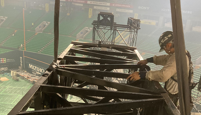 また、当社は足場工事以外にも幅広く対応。たとえば鍛冶工事やイベントの設営や撤去、イルミネーションの設置や電気工事など。