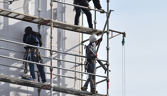 福岡県糸島市を拠点に、足場工事を承っております。足場工事ではマンションや高層ビルなど、どのような現場にも対応可能です。